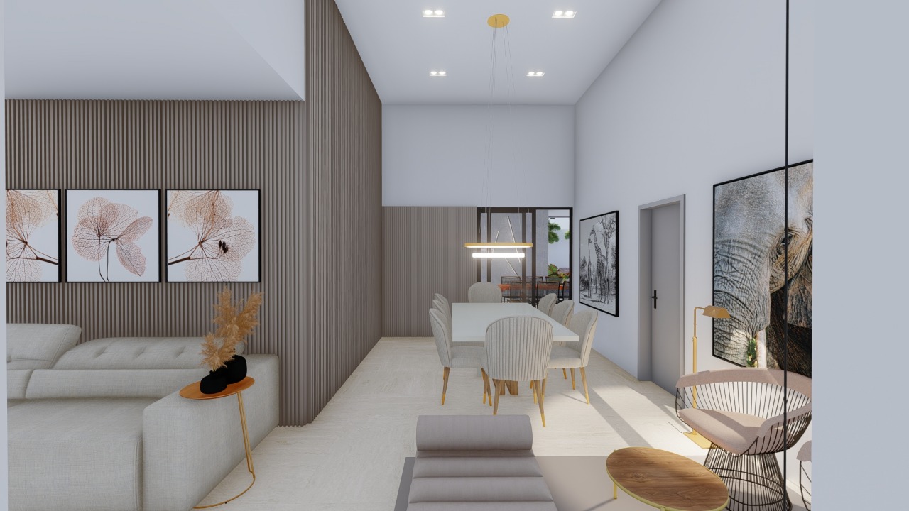 - Sala de estar/jantar com pé direito alto;