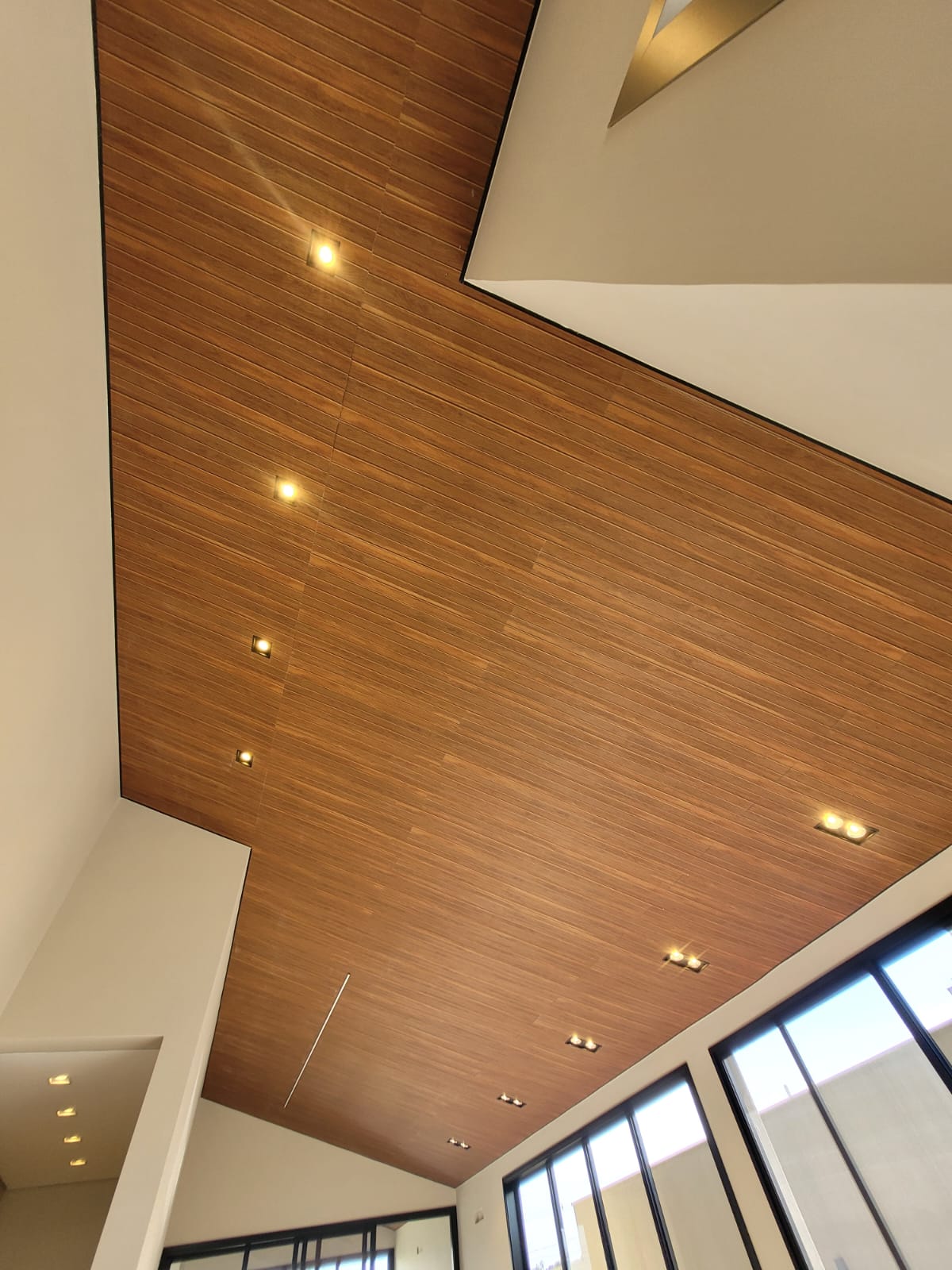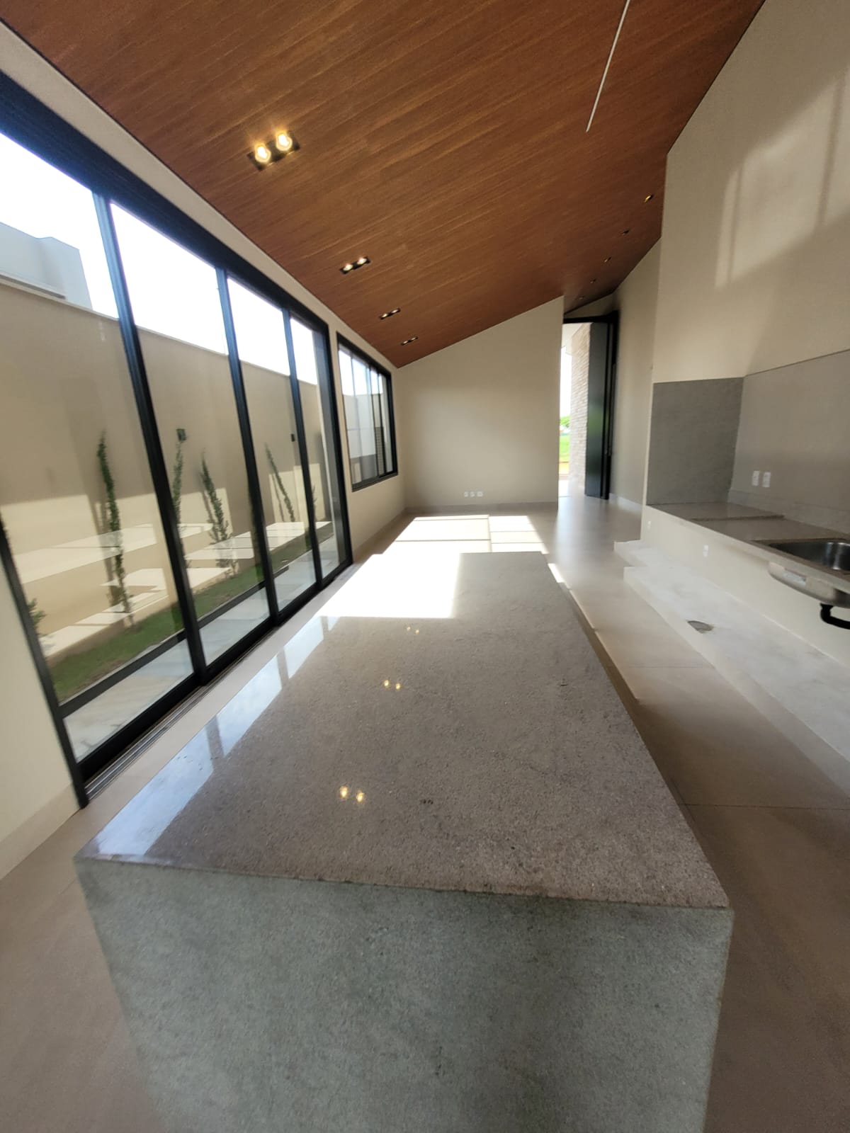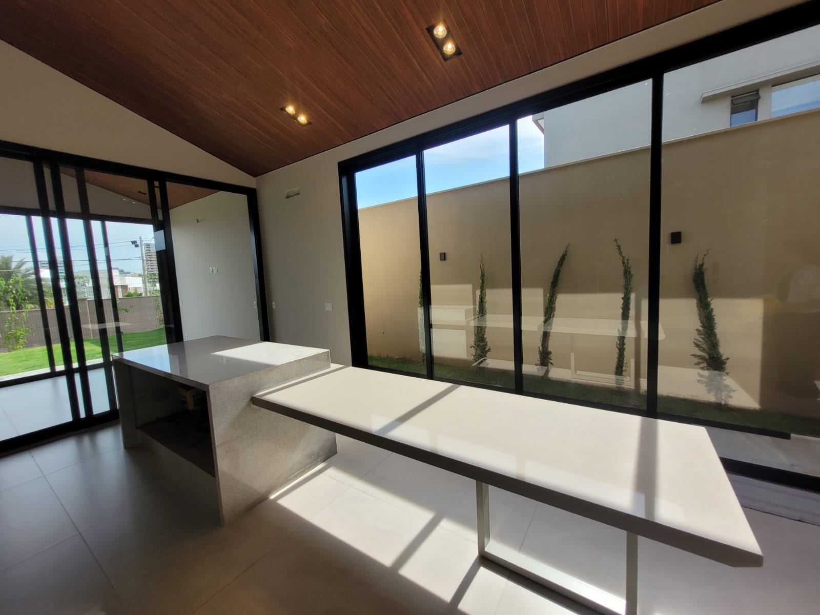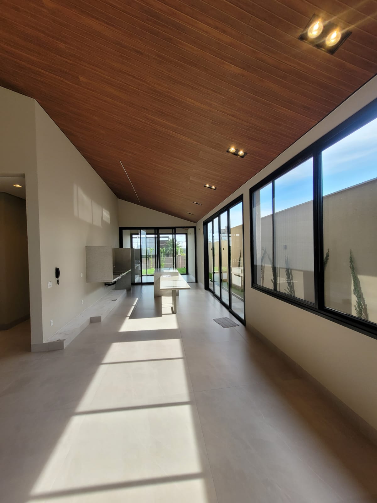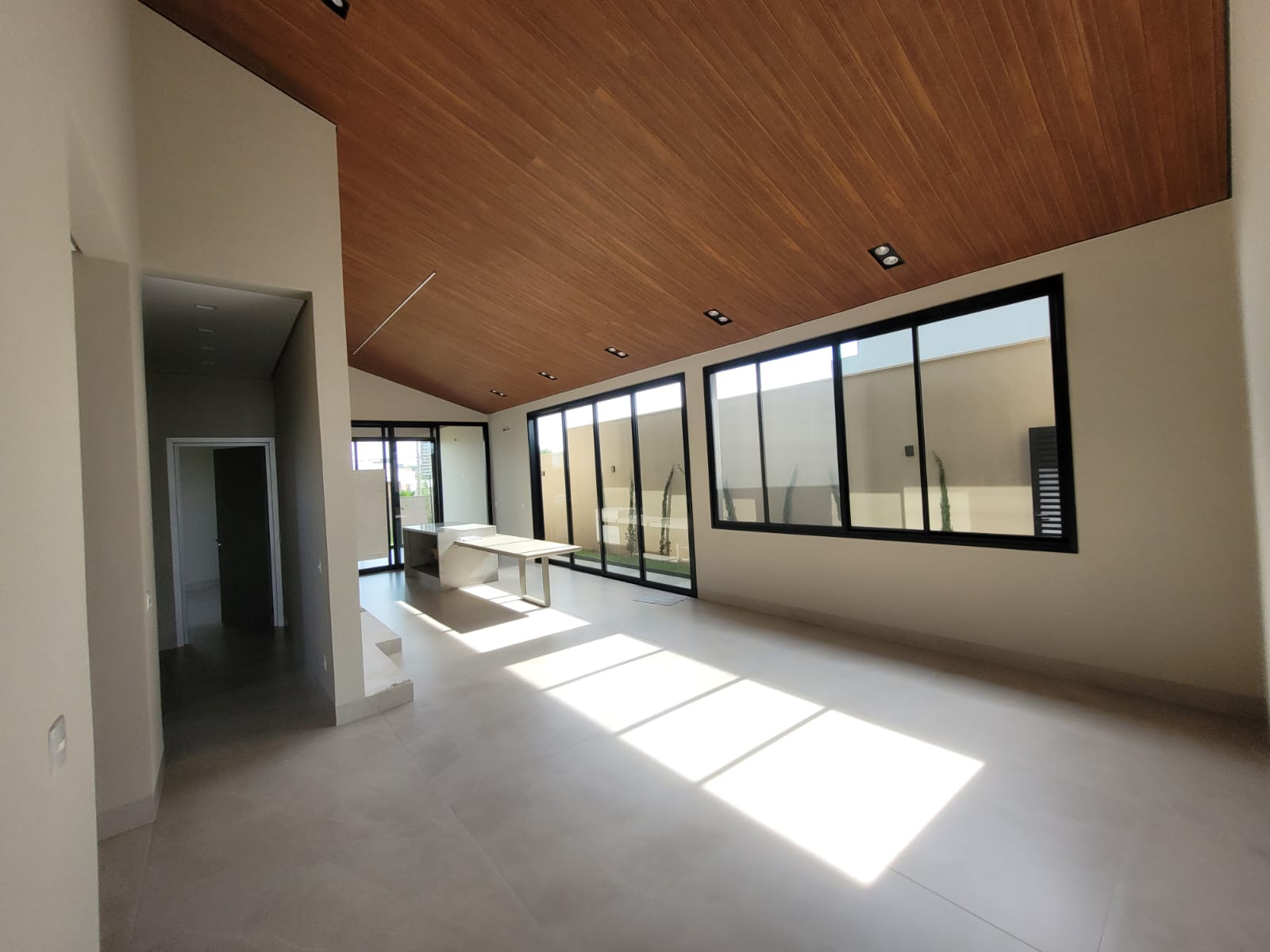 Sala com pé-direito alto e muita iluminação natural