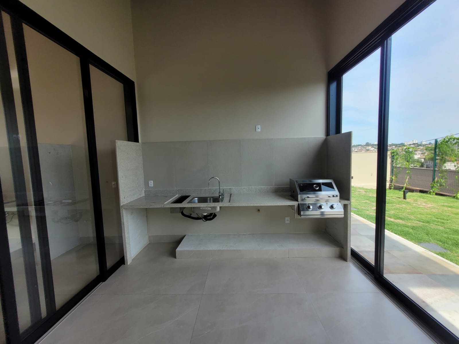 Cozinha técnica + cozinha gourmet com churrasqueira elétrica perfeita para reunir amigos